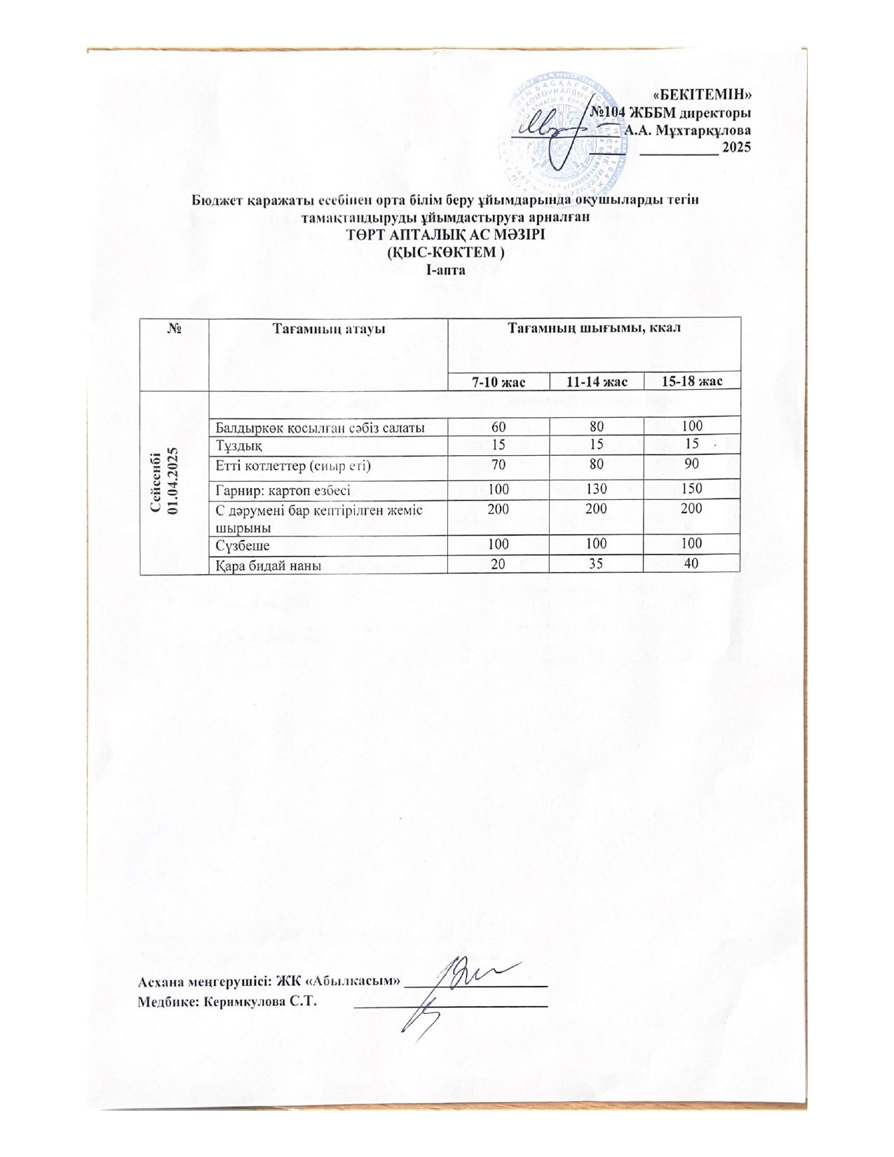 Ас мәзірі 04.04.2025